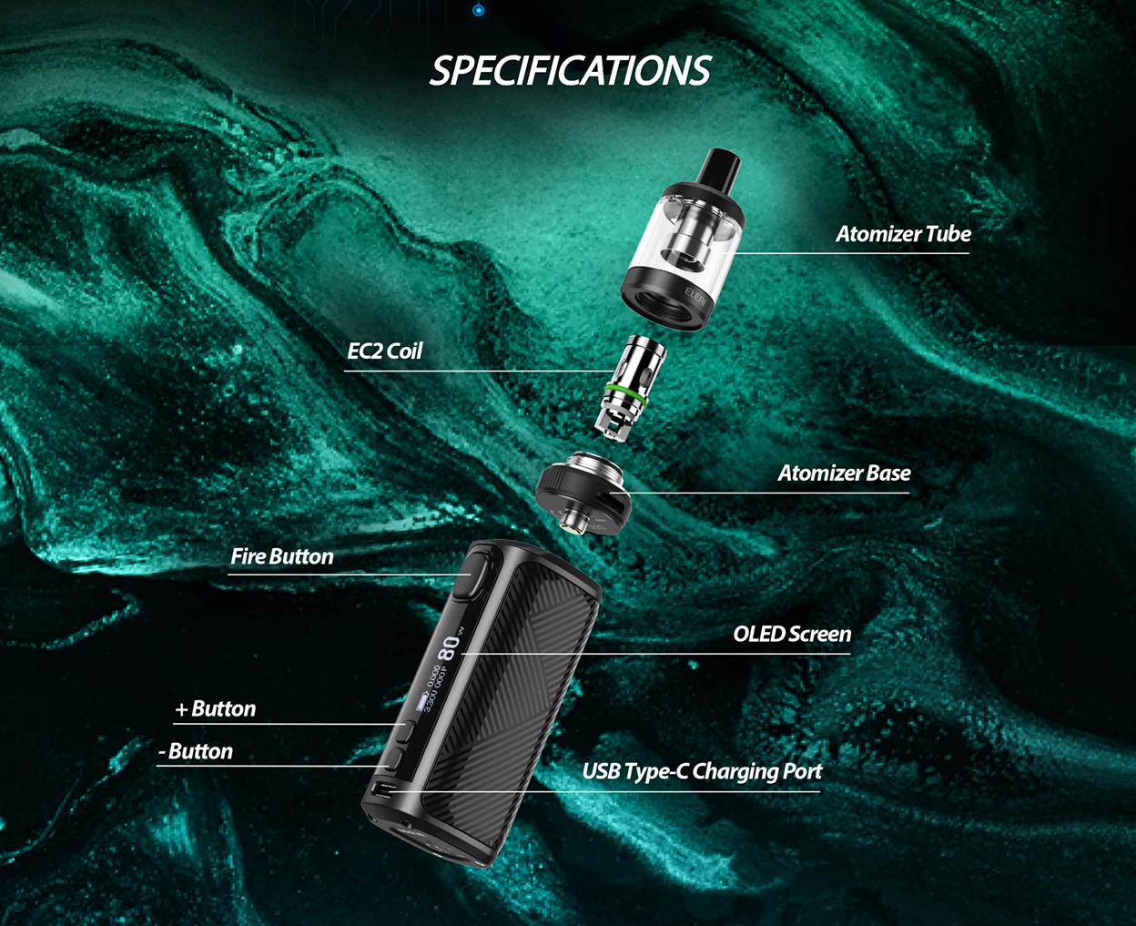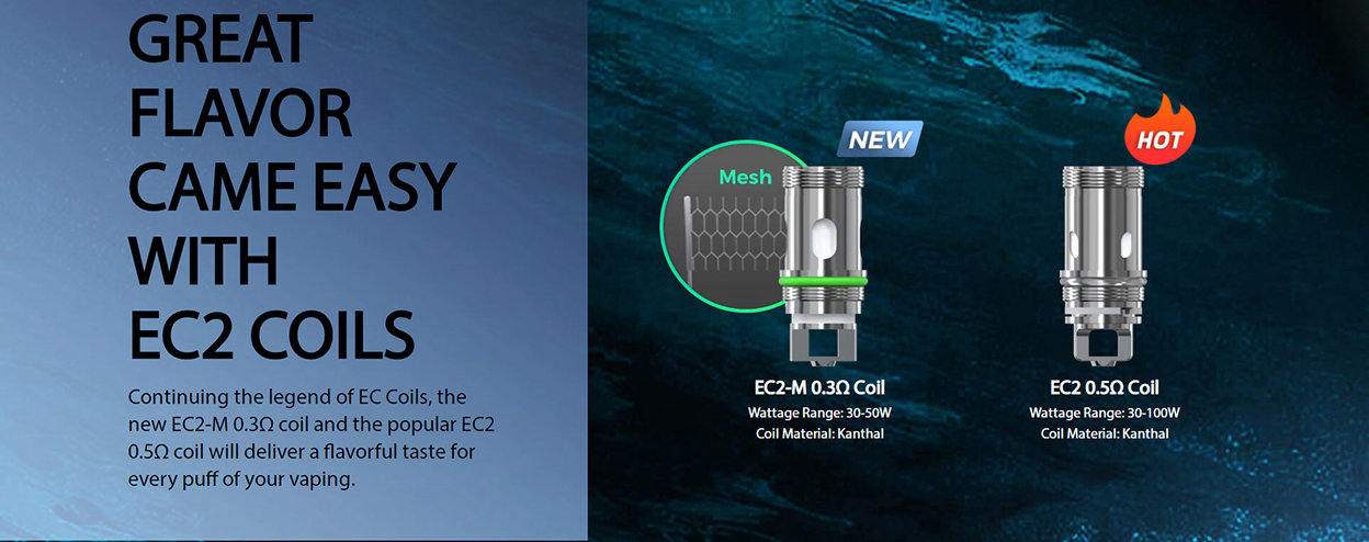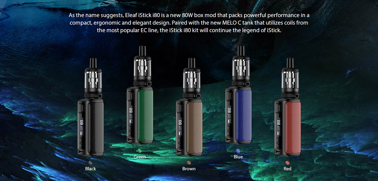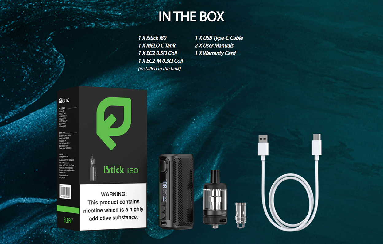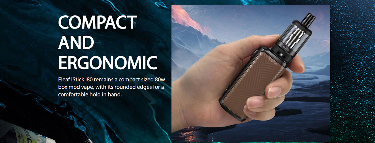which is compatible with EC coils: EC2-M 0.3ohm Coil(best for 30-50W) and EC2 0.5ohm Coil(best for 30-100W) prepared. The slide-and-fill solution is nice to resupply. iStick i80 is an elegant and ergonomic compact design that brings the best comfort and allows you to easily enjoy vaping.